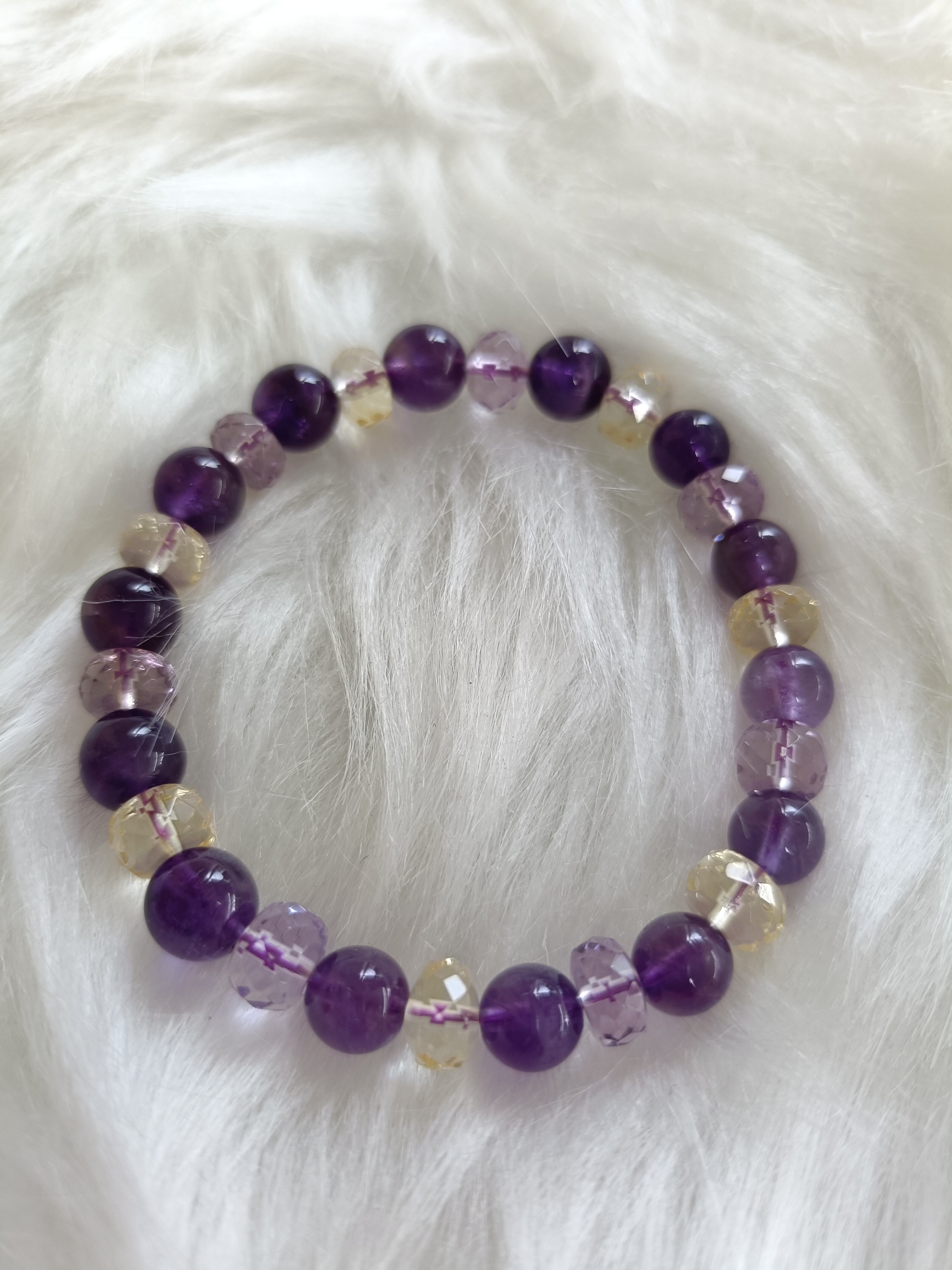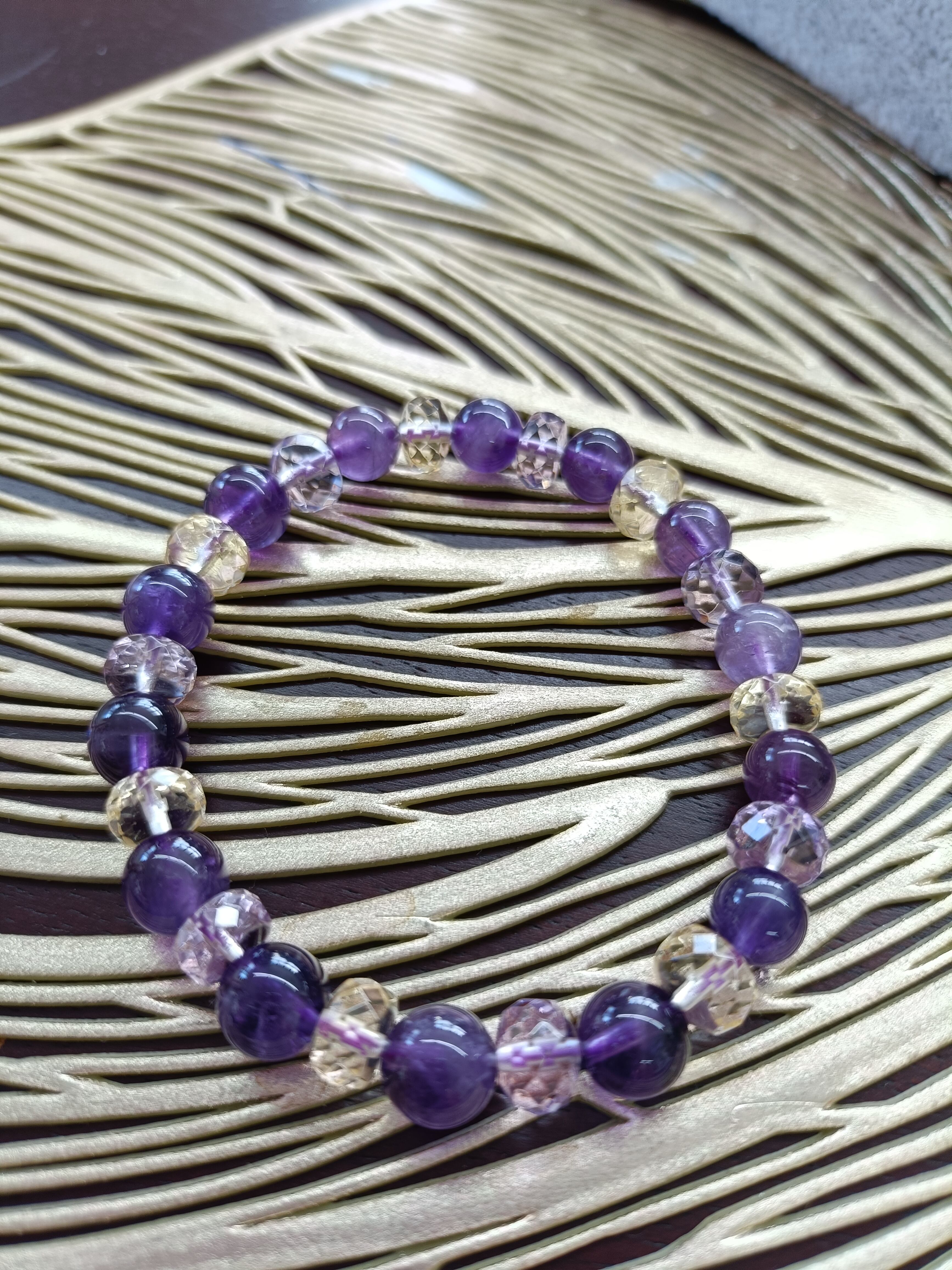 アメジストと水晶の魅力が詰まったこの特別なブレスレットは、心の安定を促進し、ポジティブなエネルギーを引き寄せる力があると言われています。美しい紫色のアメジストと透明な水晶の組み合わせは、あなたの周囲に穏やかな雰囲気を与え、身に着けることで心をクリアに整理するお手伝いをしてくれるでしょう。
