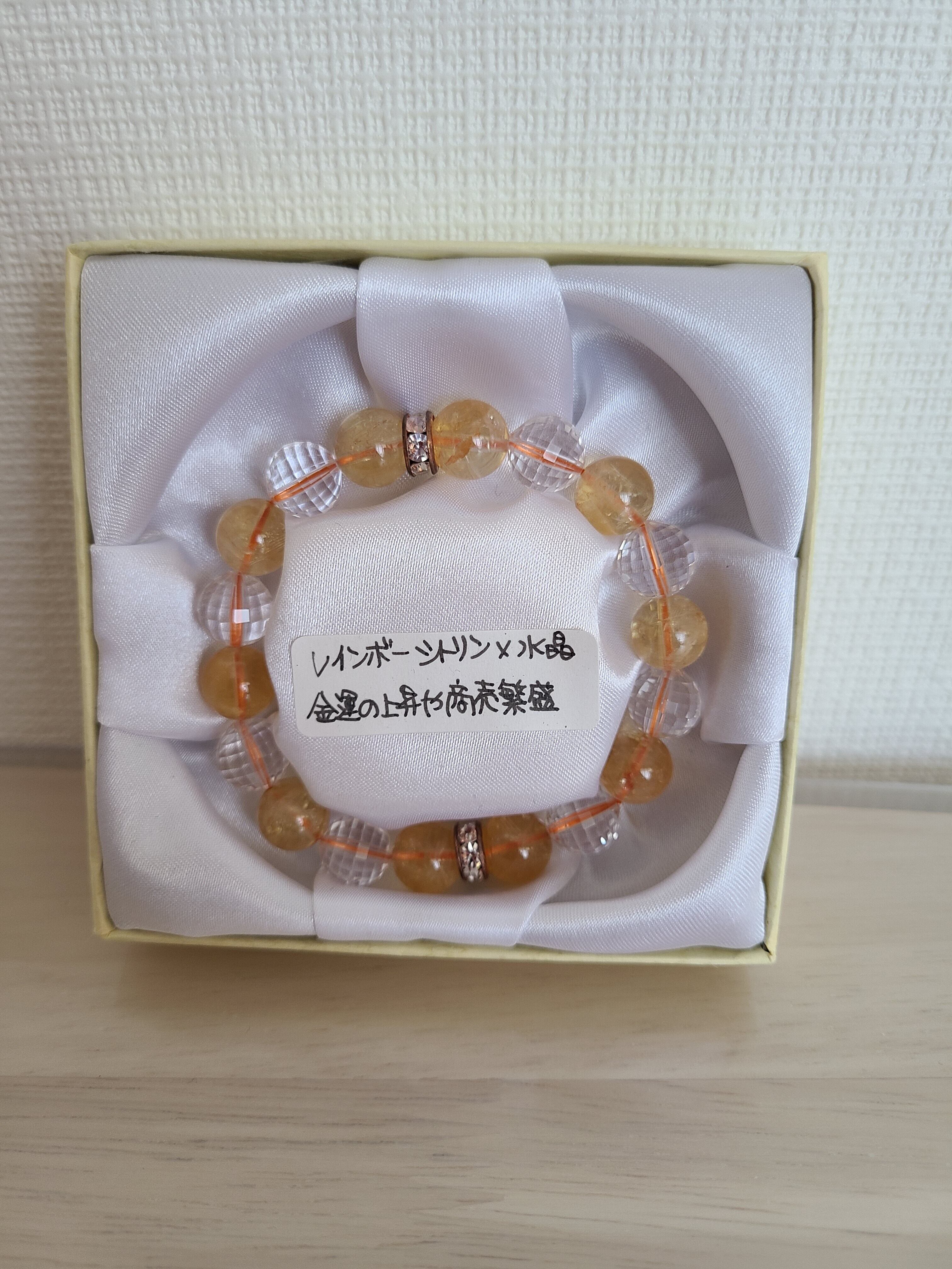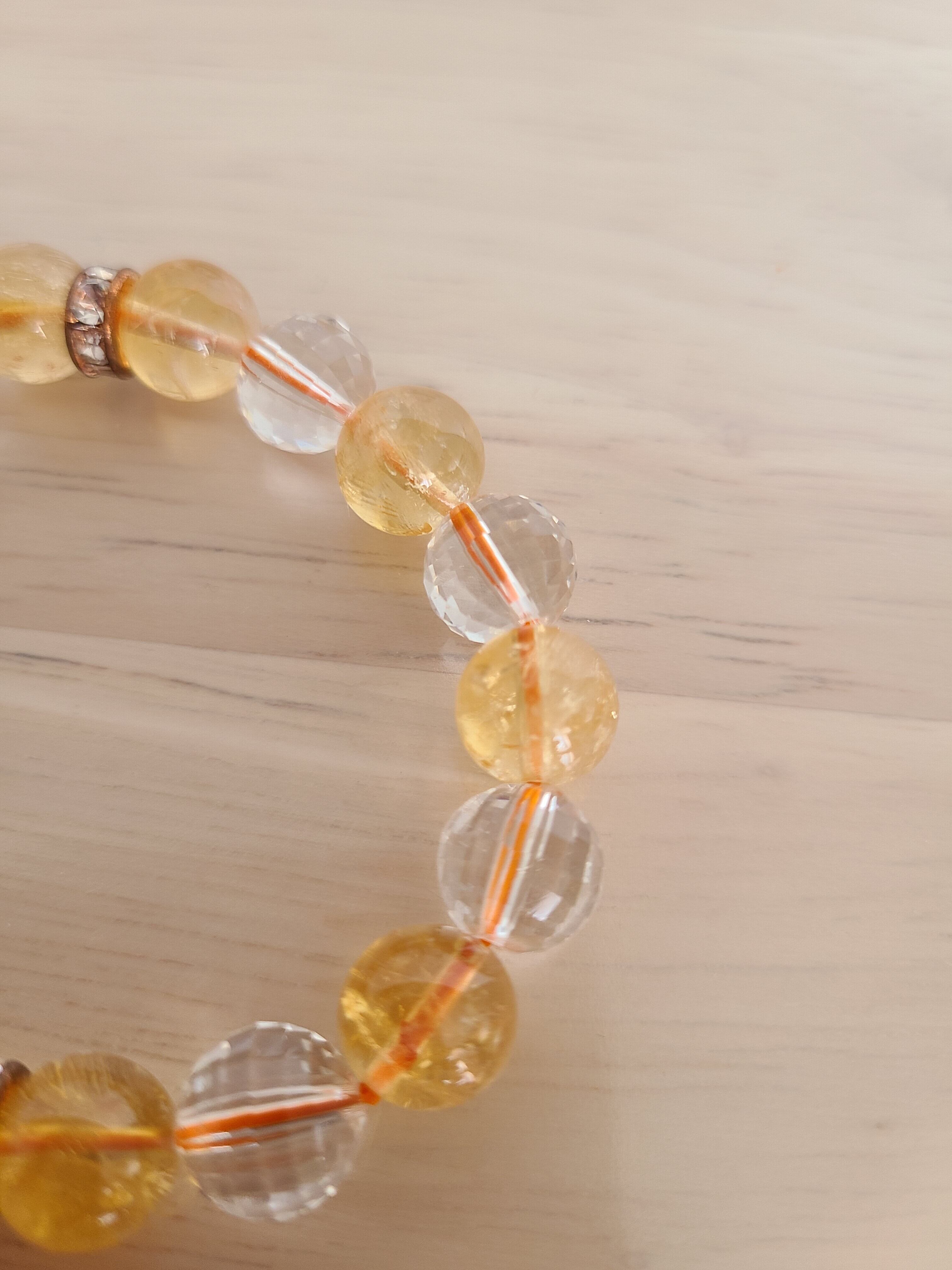 金運UP!商売繁盛!開運浄化のパワーストーン、レインボーシトリン×水晶のブレスレットが登場しました。黄色の美しいシトリンと水晶の組み合わせは、パワフルなエネルギーを放ち、お守りとしても最適です。金運の上昇や商売繁盛、さらにはマイナスエネルギーの浄化や開運効果も期待できます。