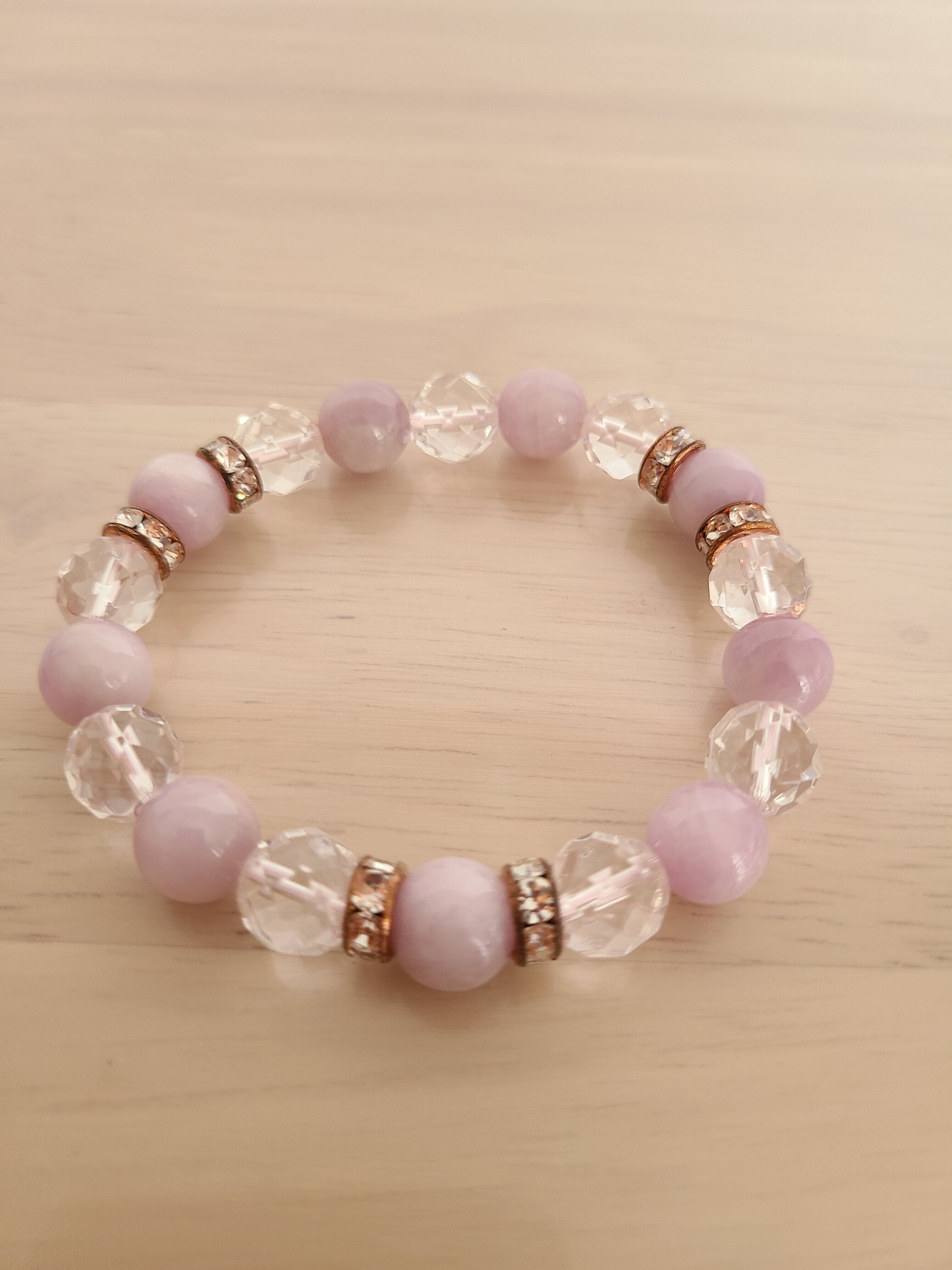 どんな時もあなたをサポートしてくれる、ミルキークンツァイト×水晶のブレスレット。ぜひ、あなたの日常に加えて、パワフルなエナジーを感じてください。